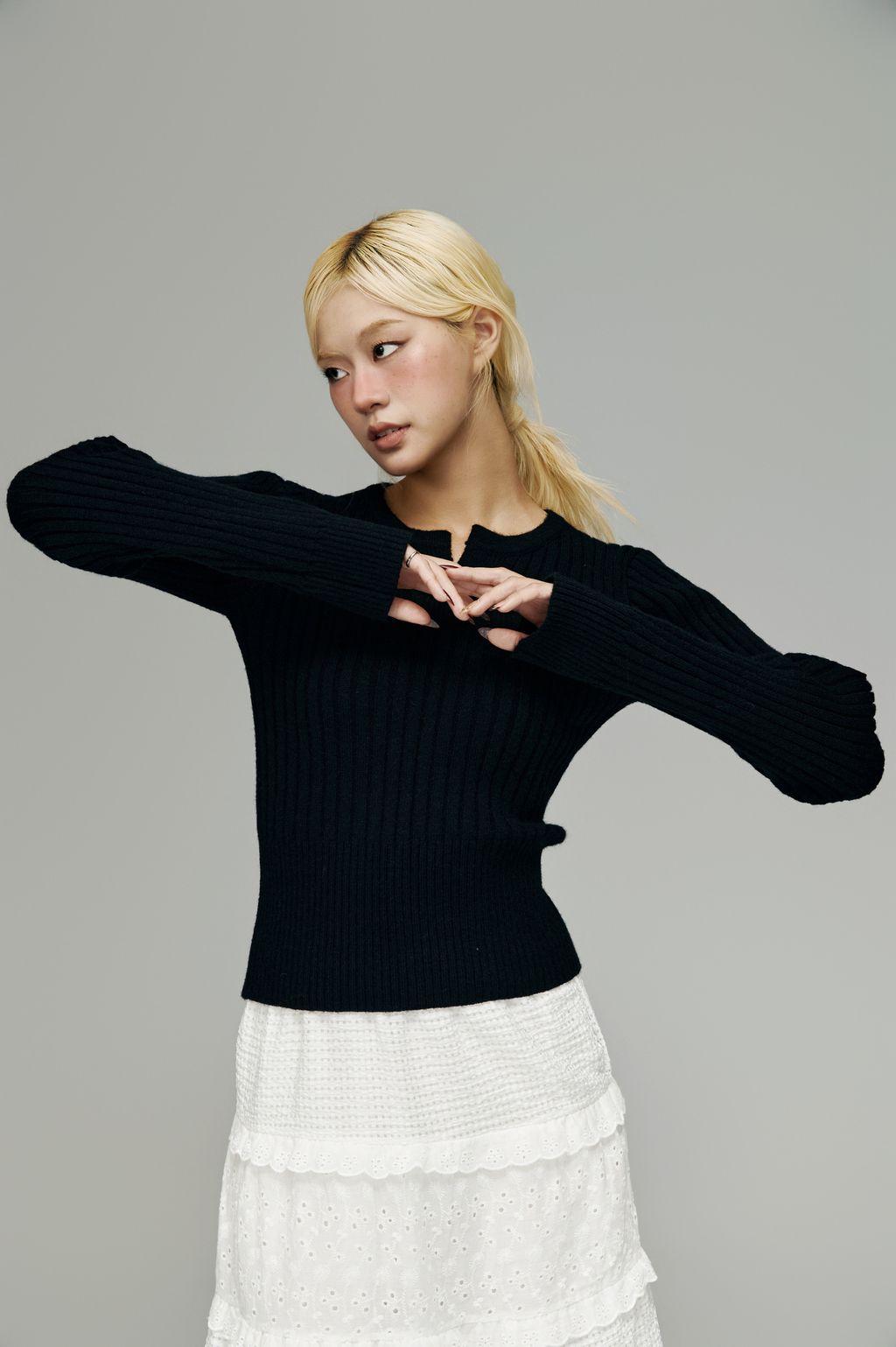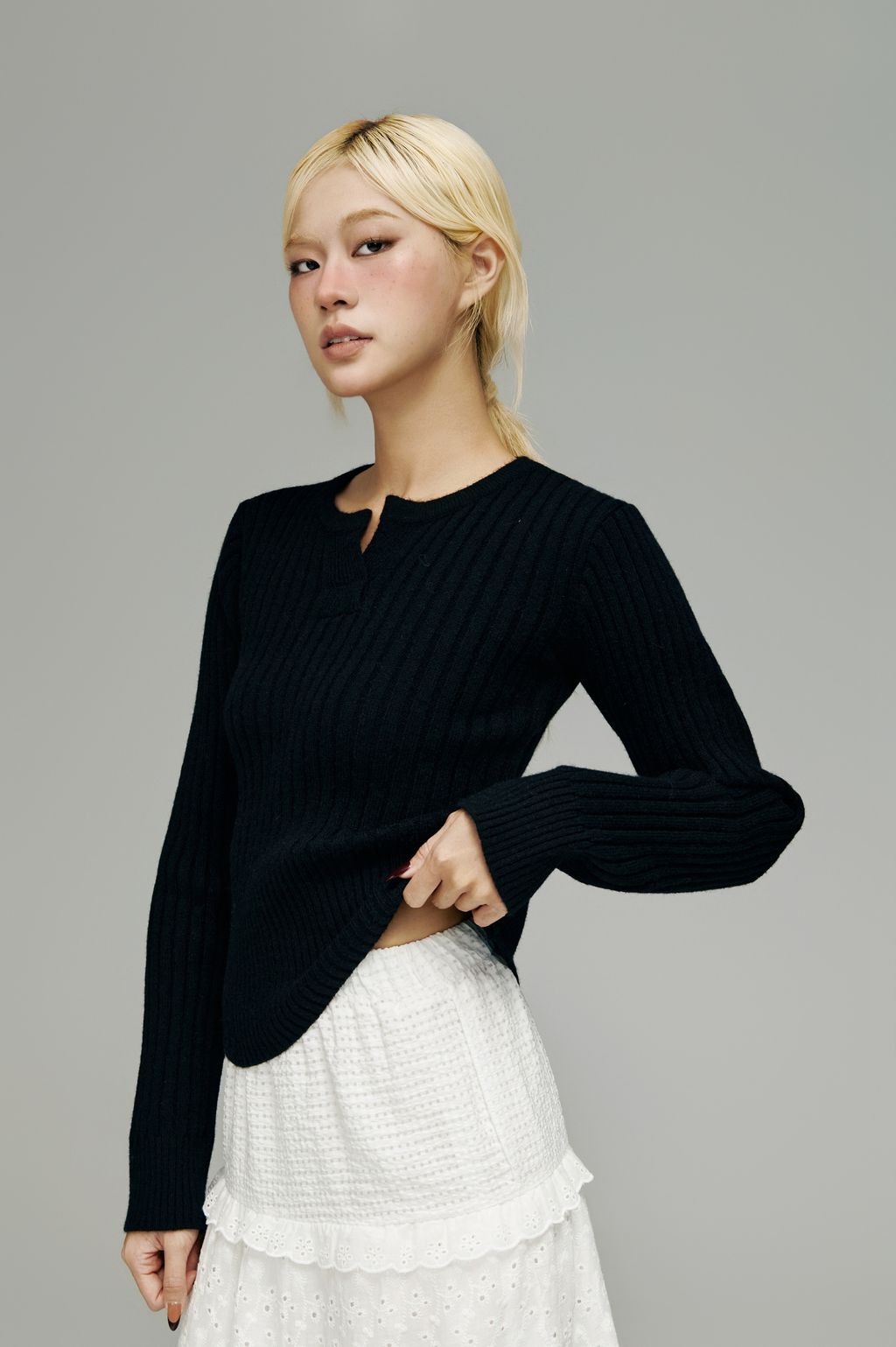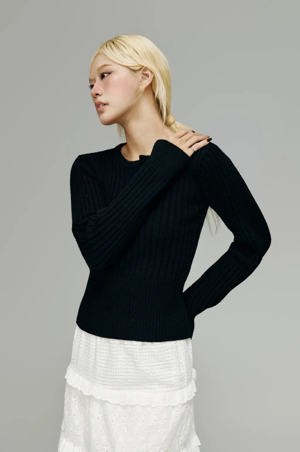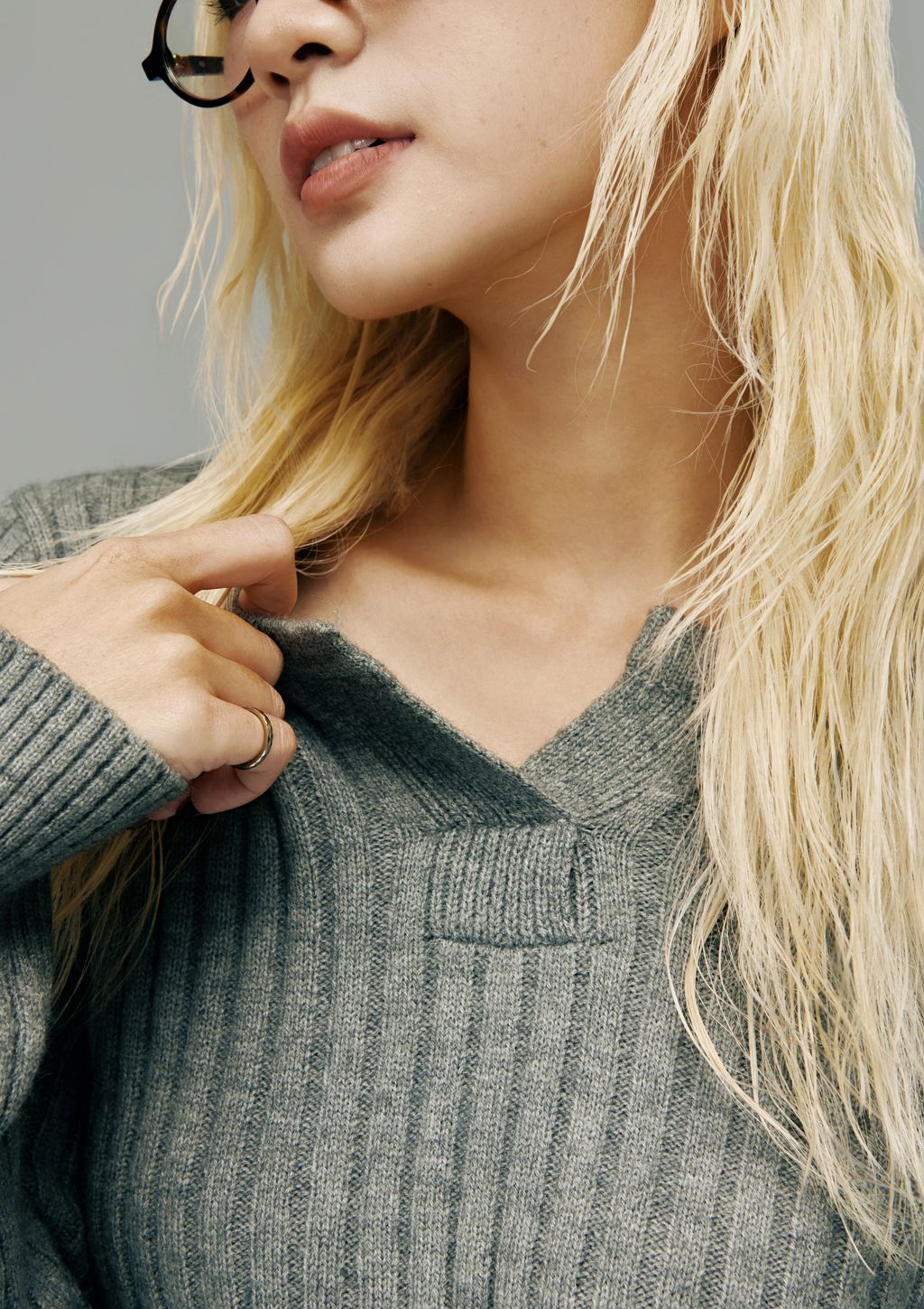 這款針織以細密羅紋結構打造,