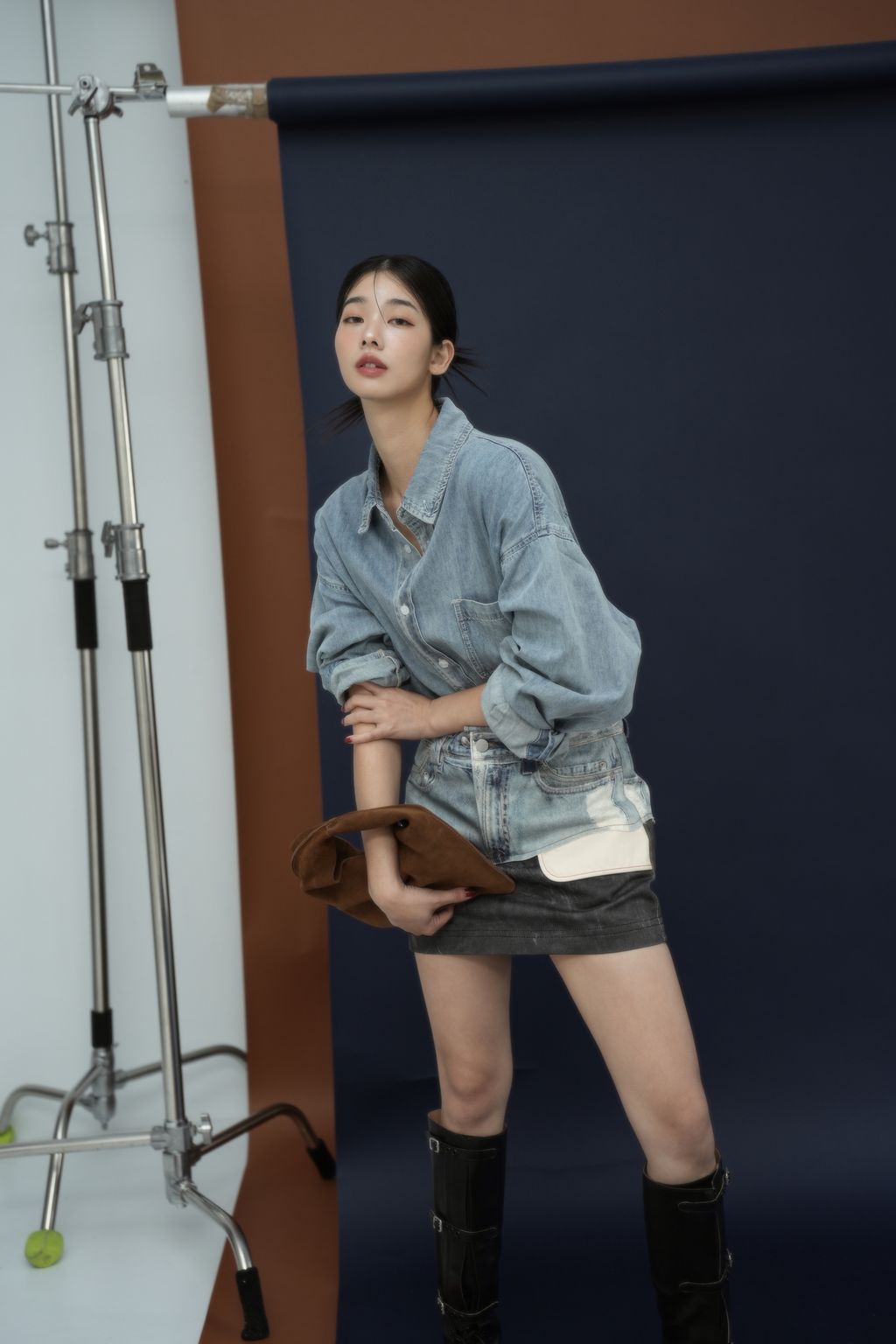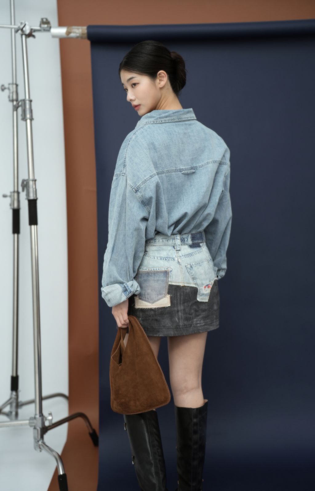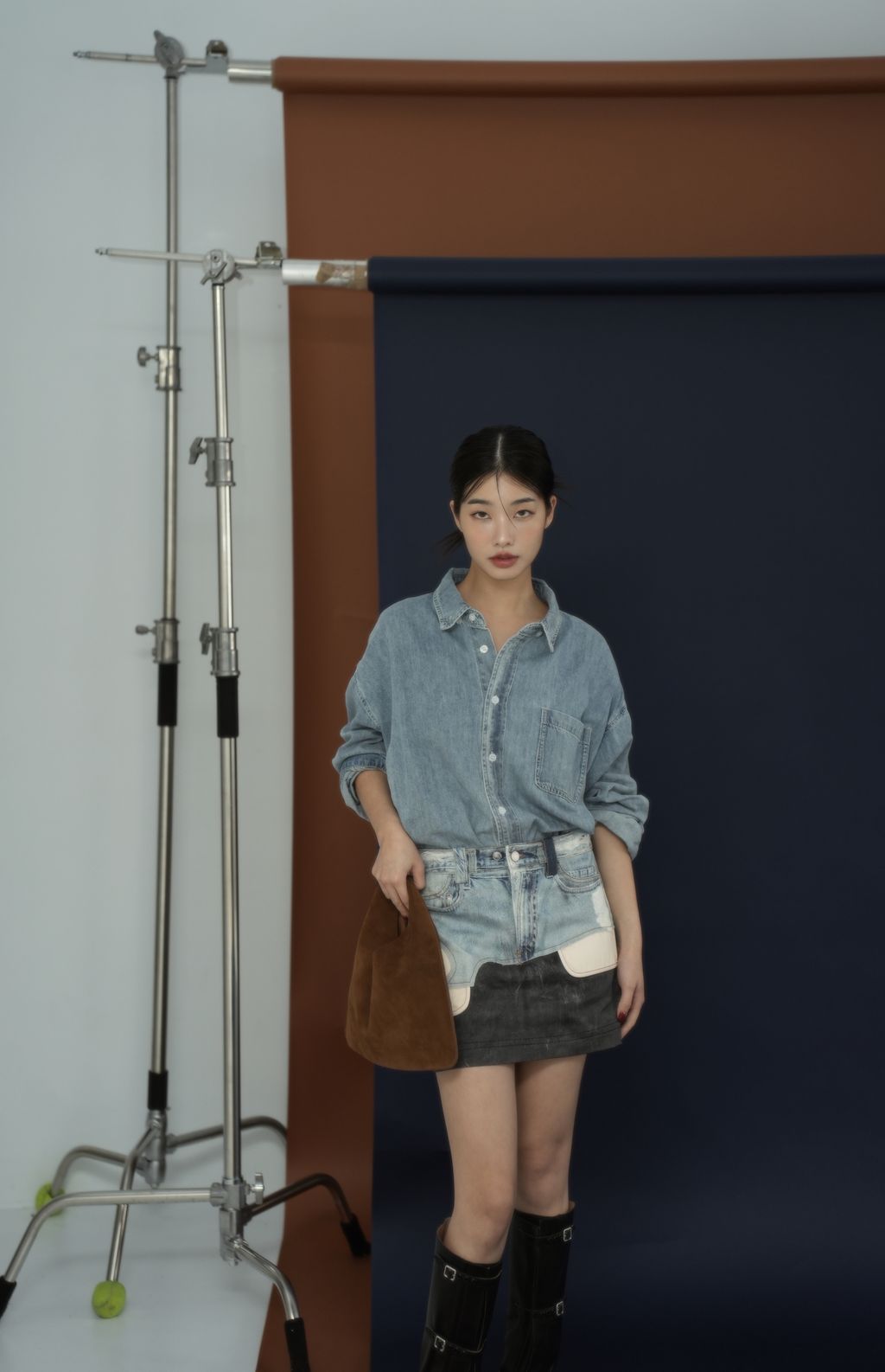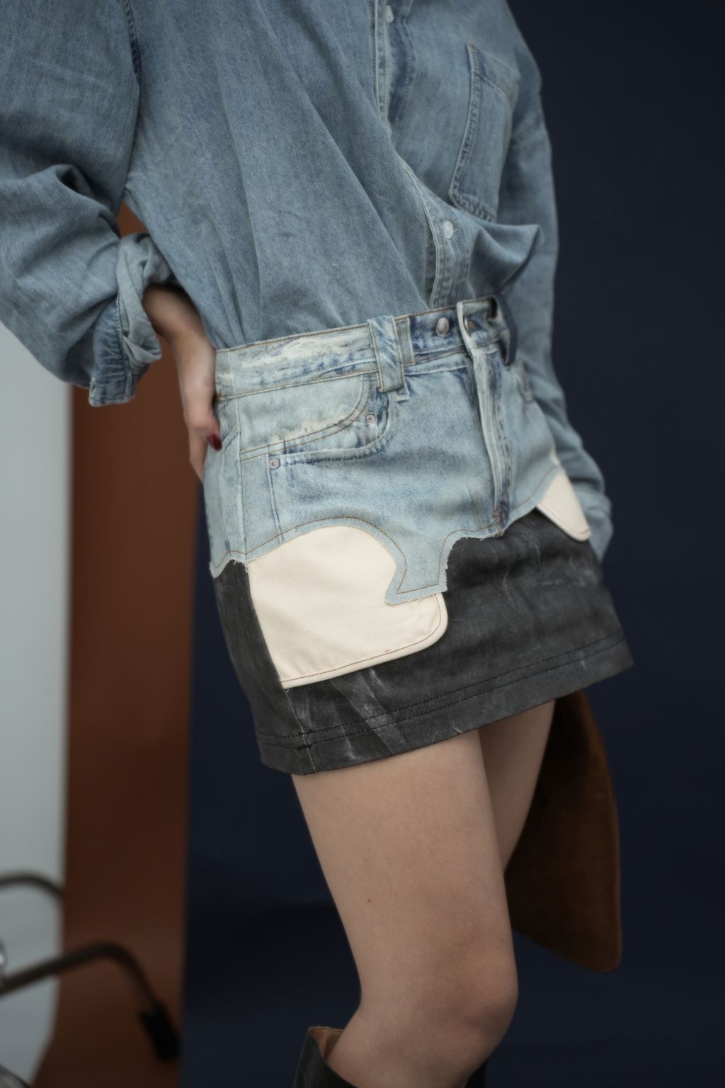 拼接感牛仔裙