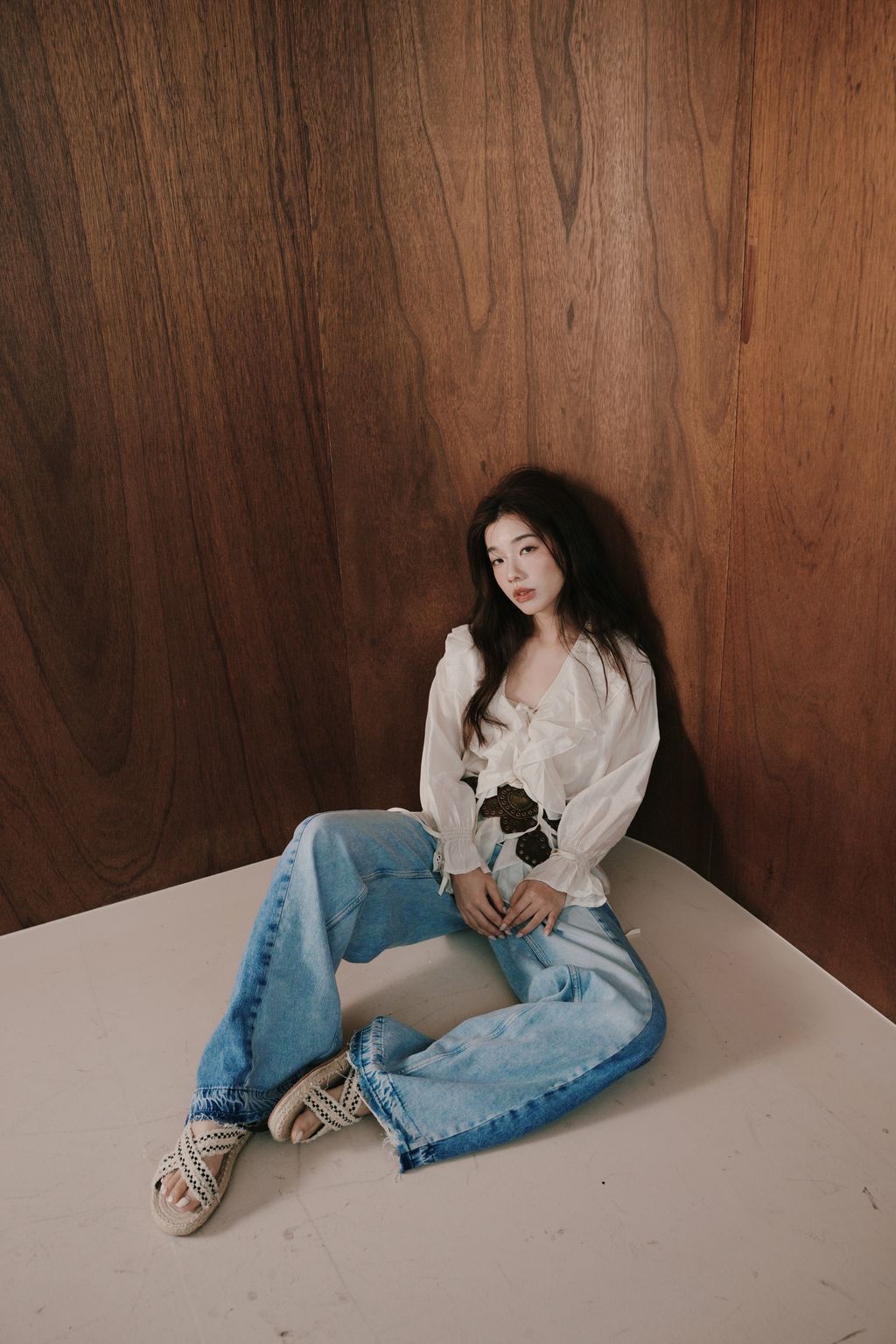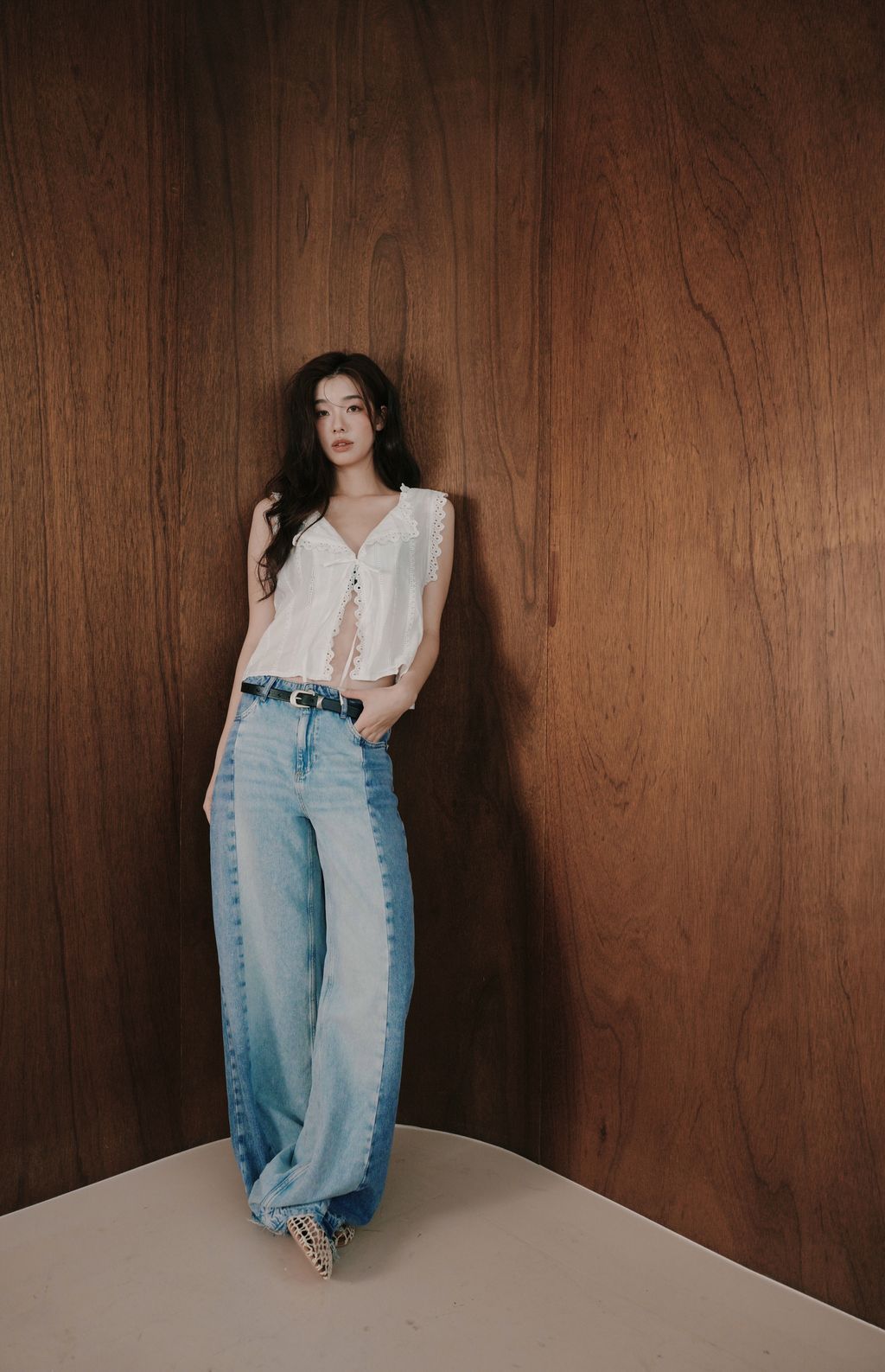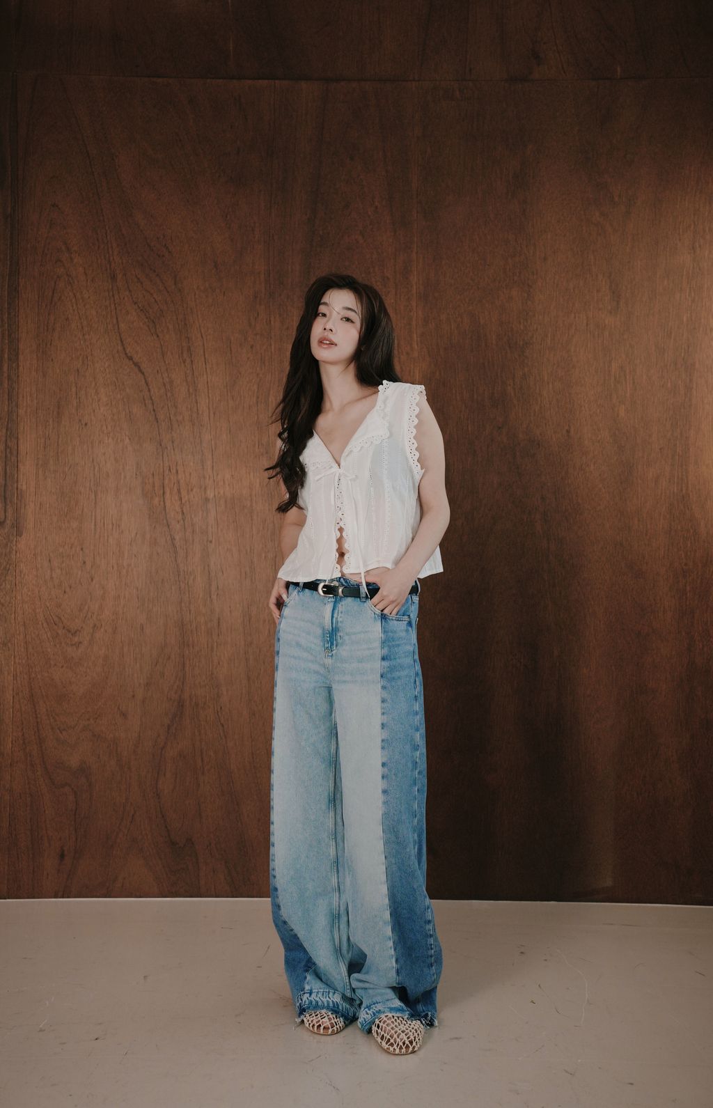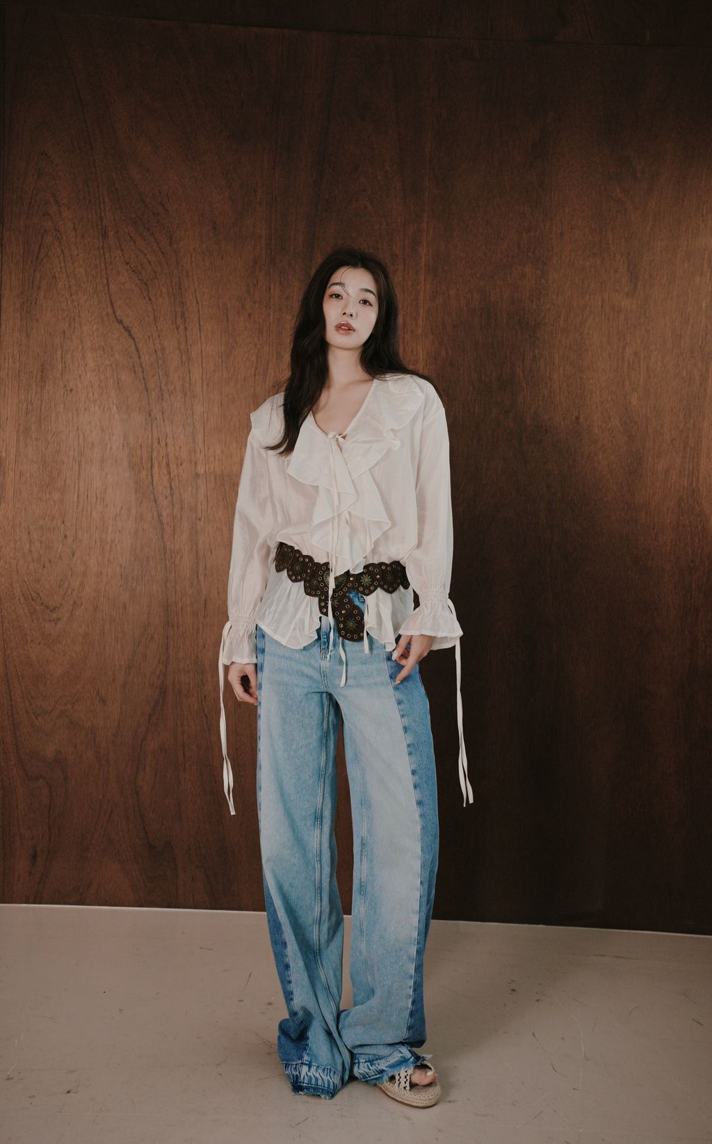 讓整體更具層次與立體感,褲腳微拖地設計增添隨性氛圍。