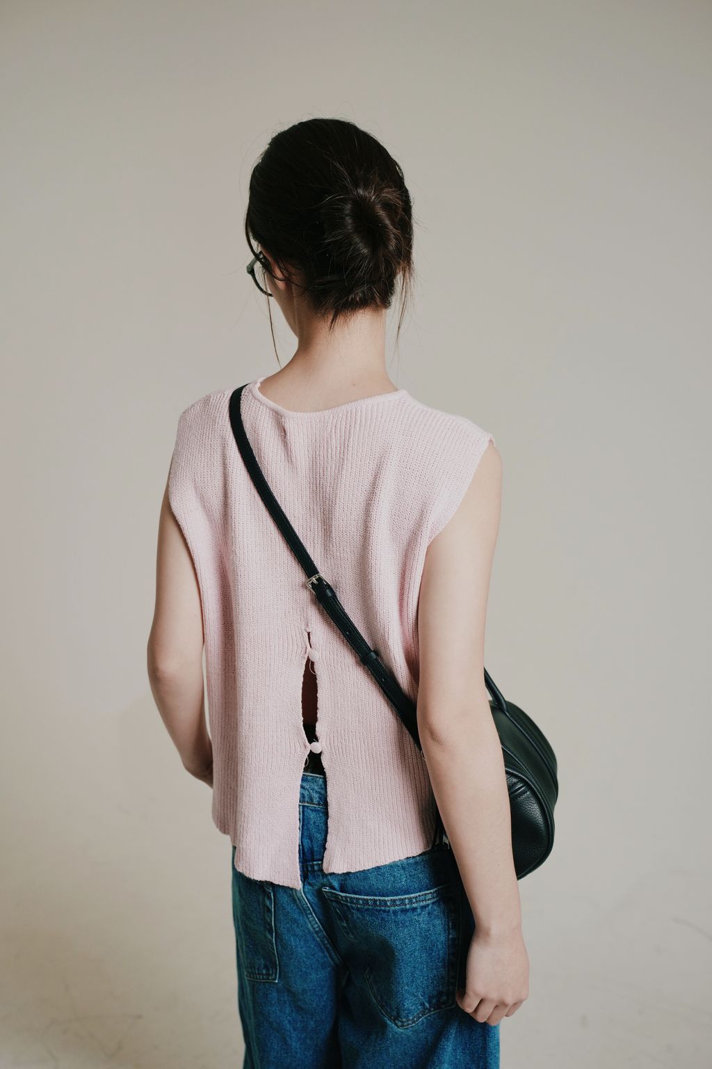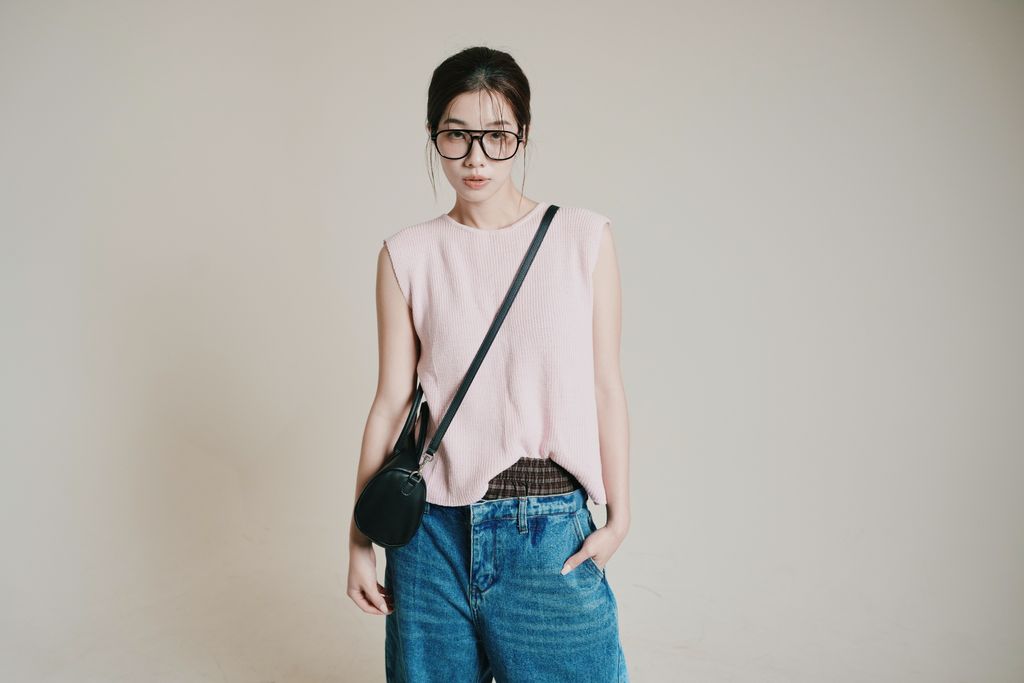 粉色針織背心以細緻針織工藝打造