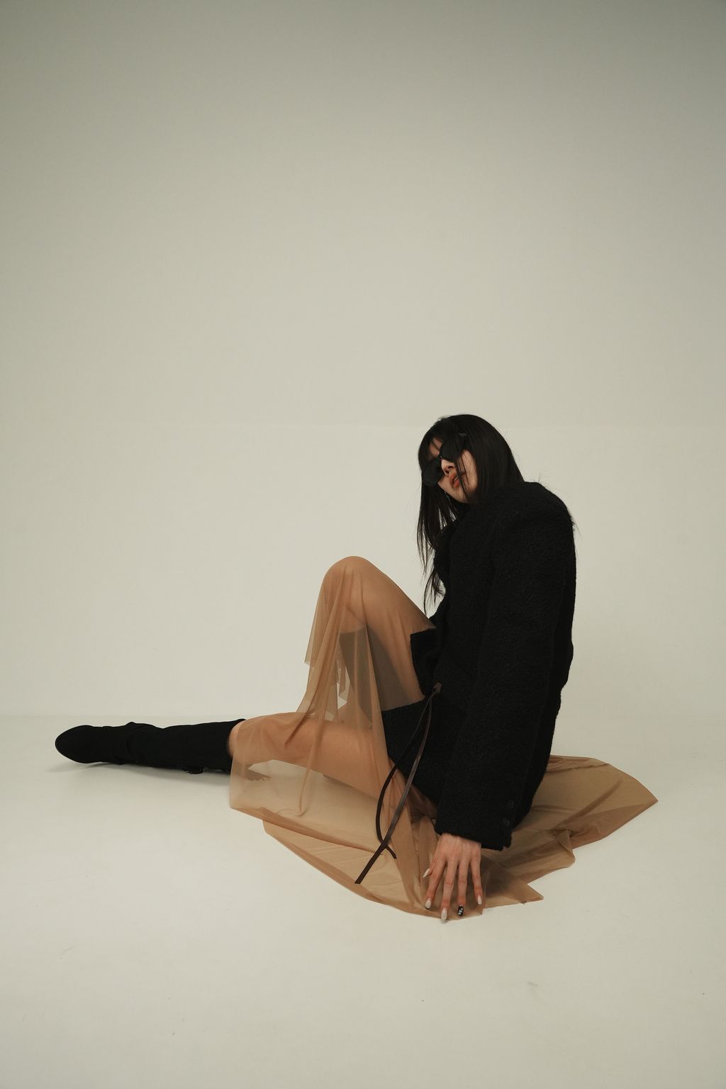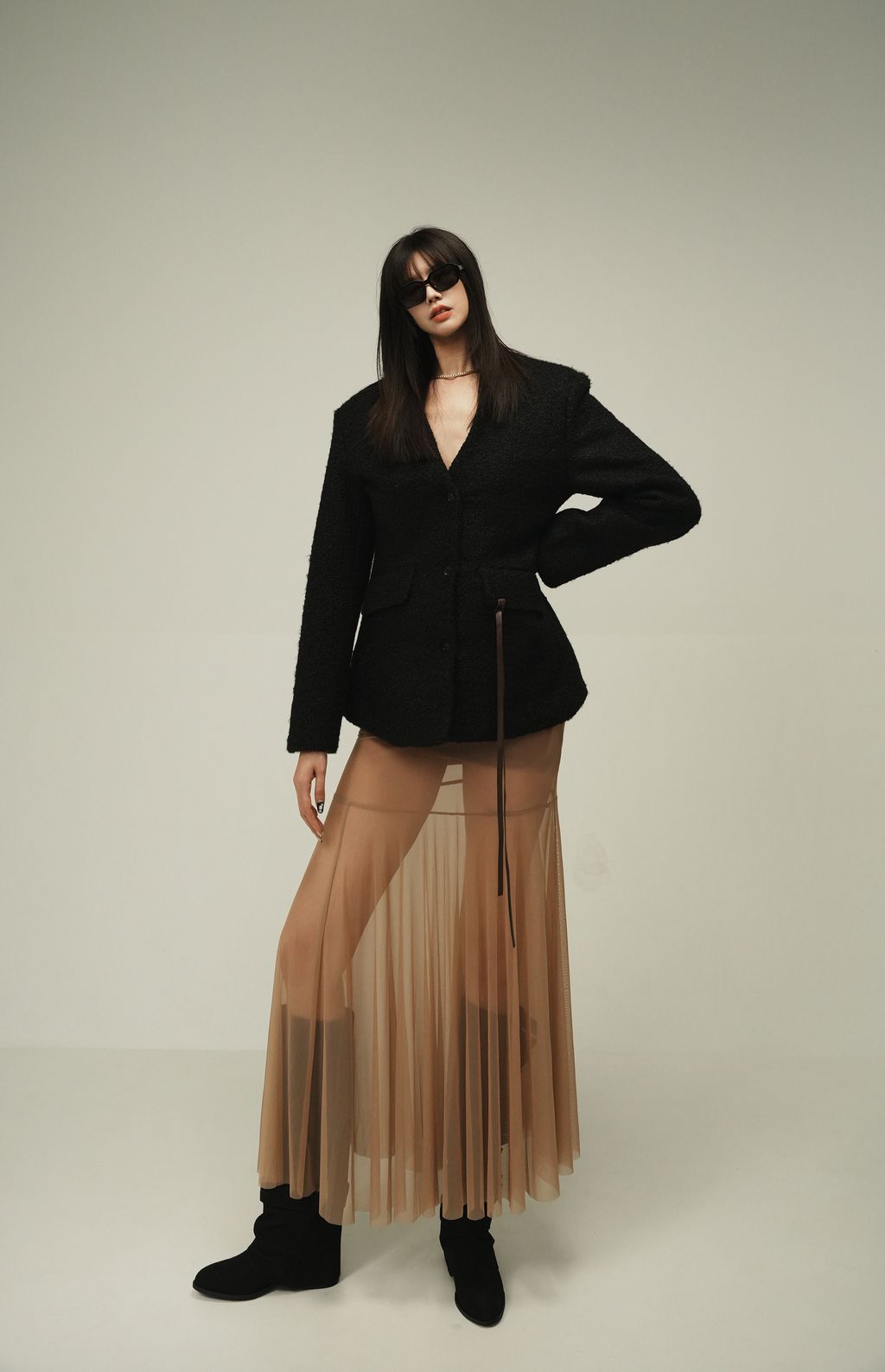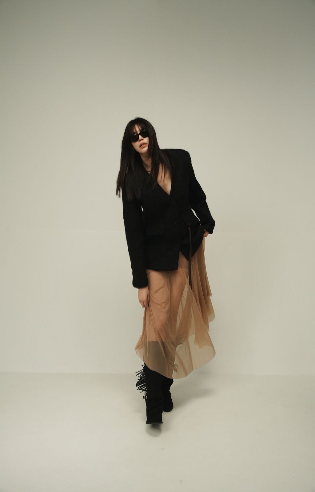 紗裙以輕薄霧面紗料製成,具有細緻挺度,